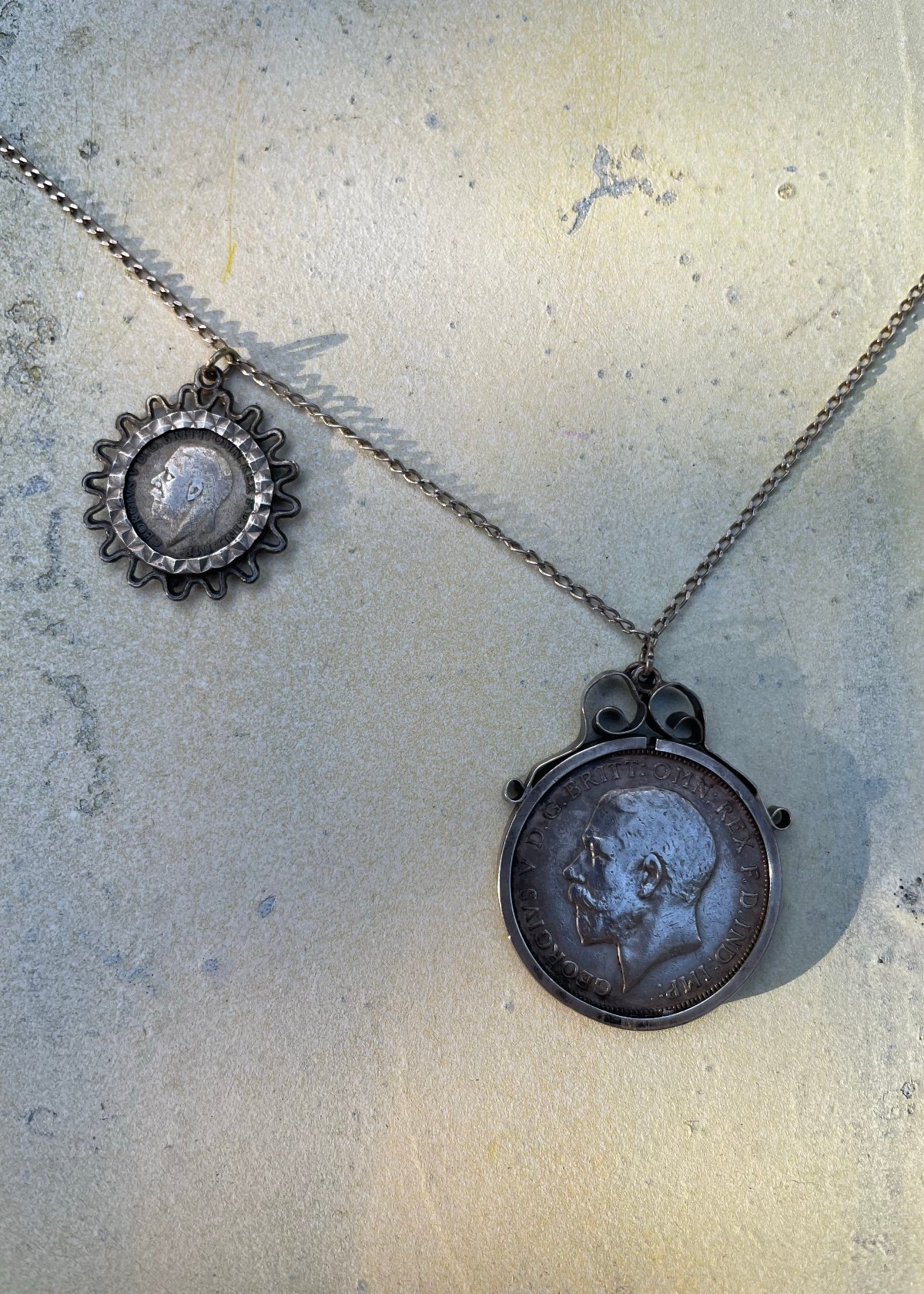 Antique Sterling Silver King George V Coin Pendant Necklace