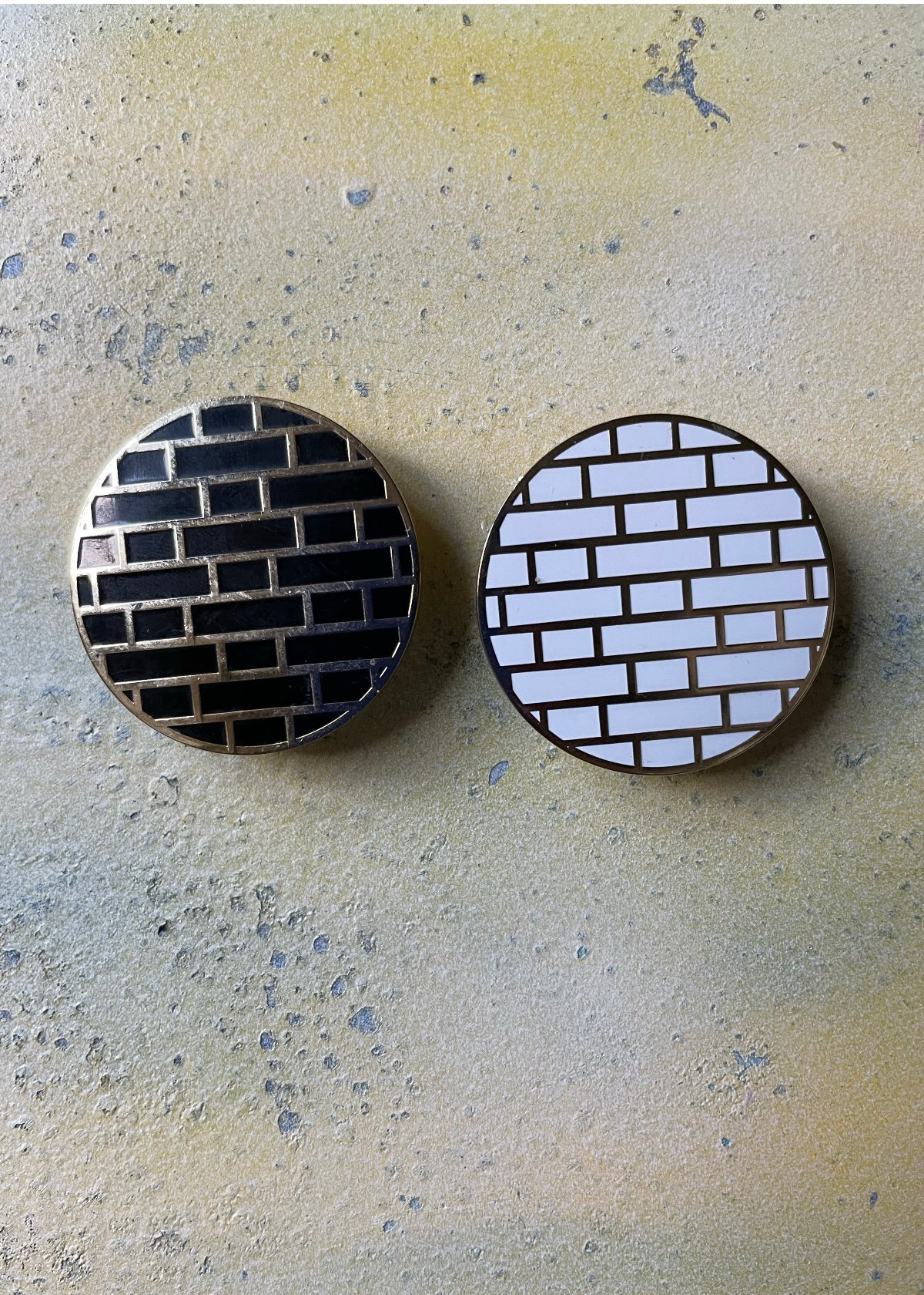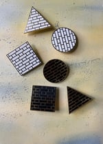This brooch is based on the flemish bond brick pattern seen across houses in London, England.