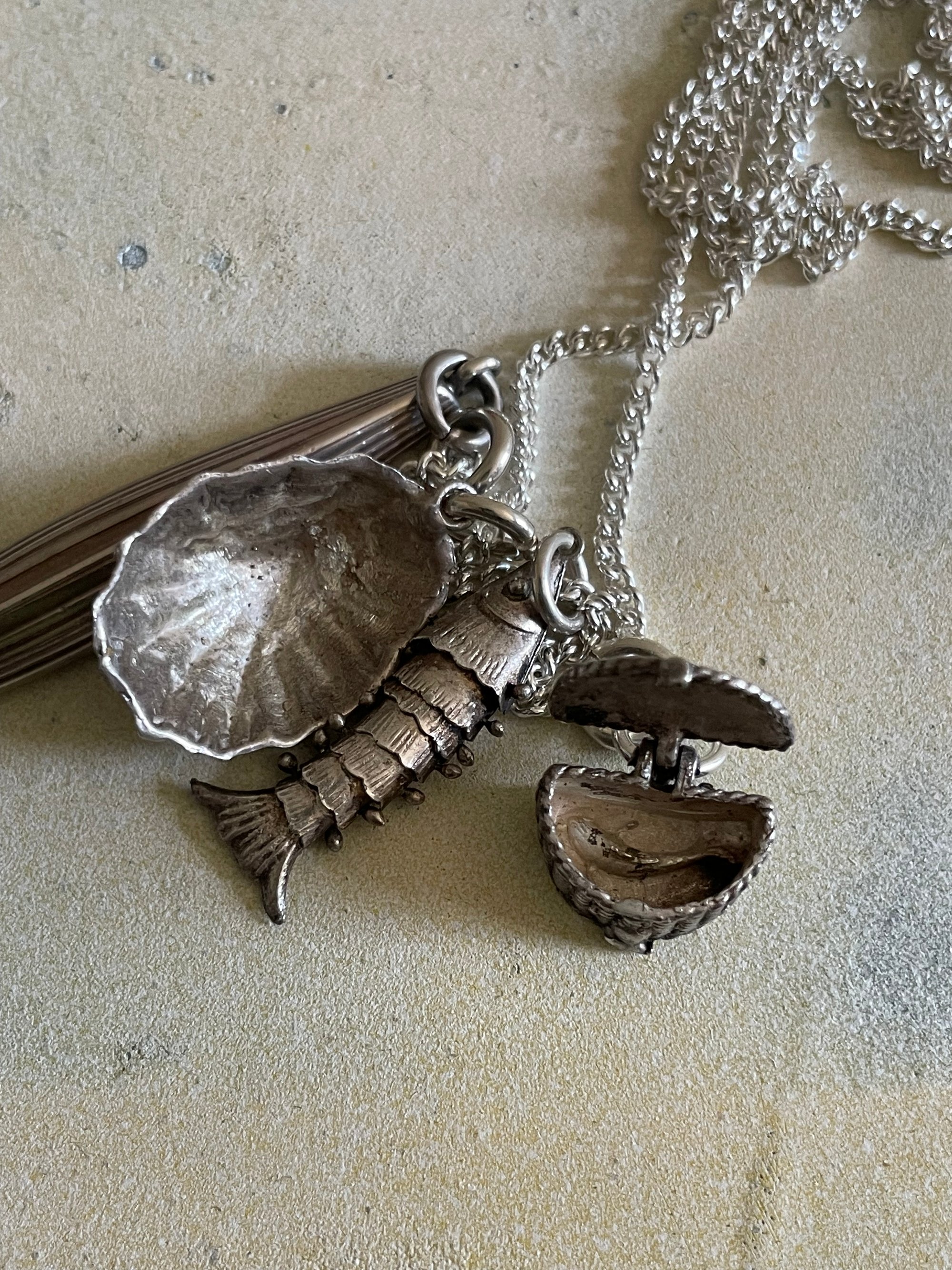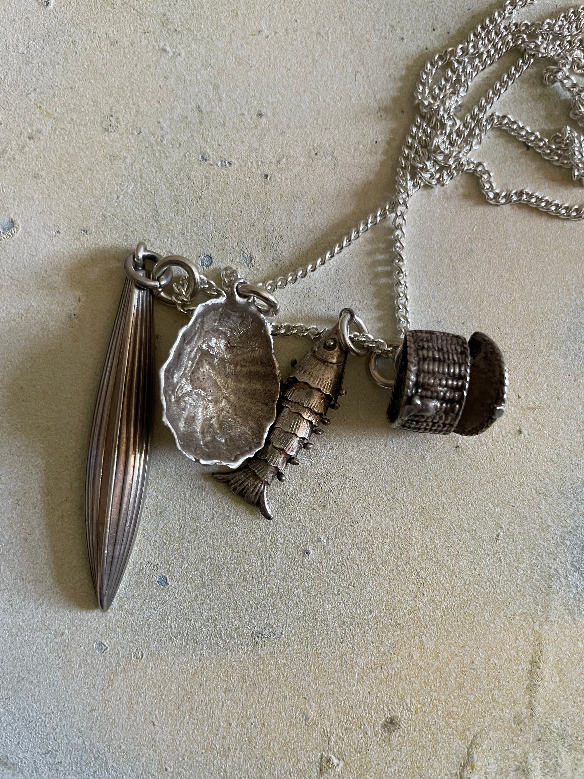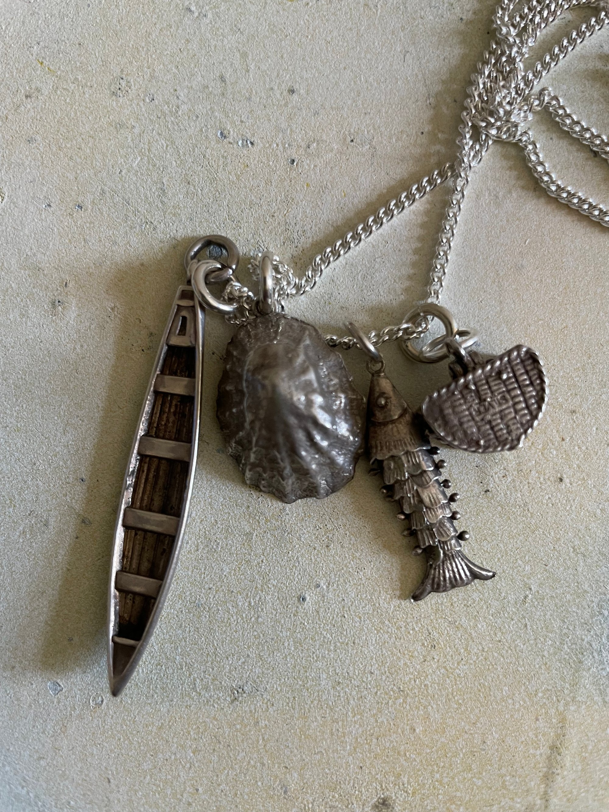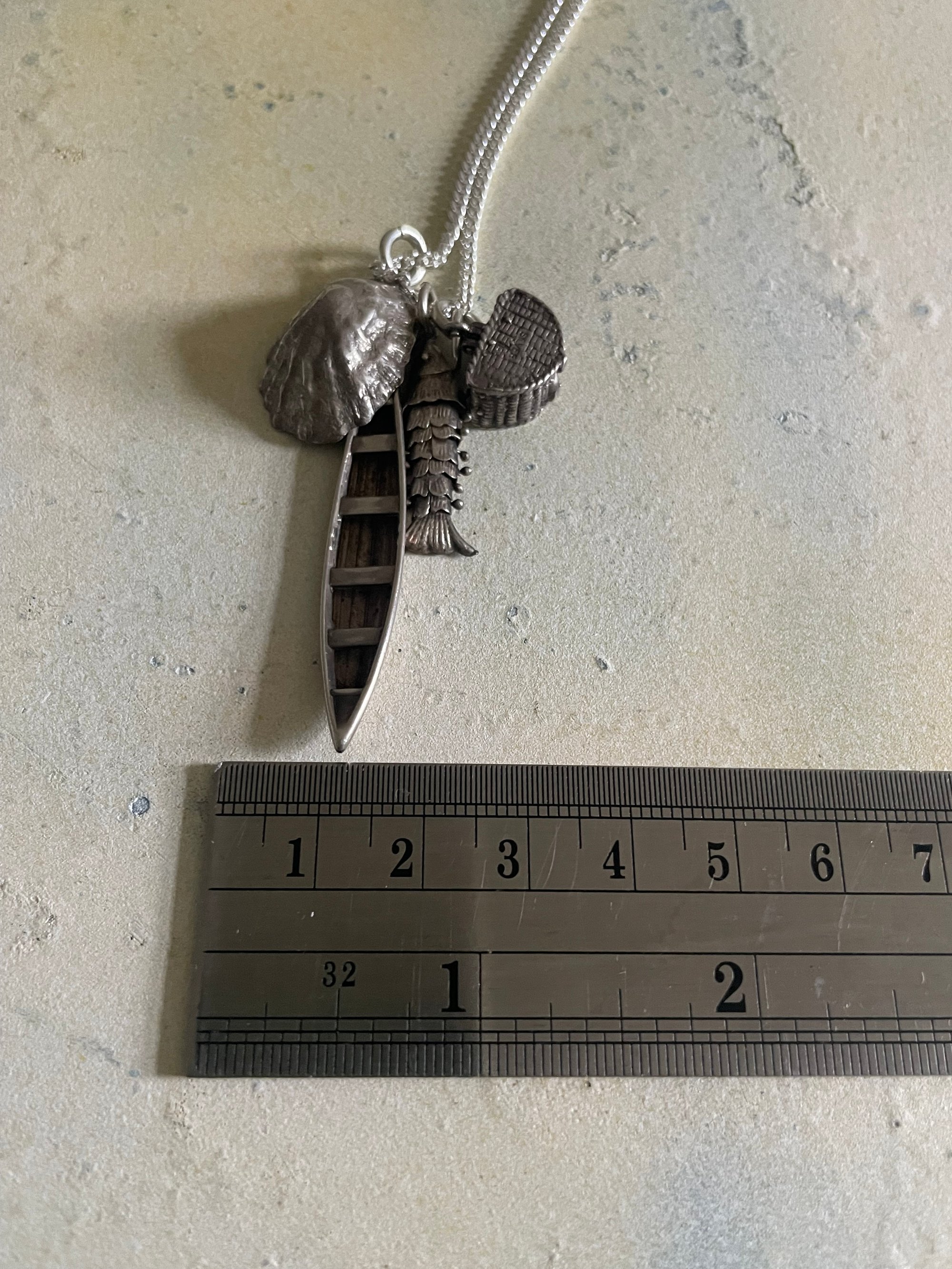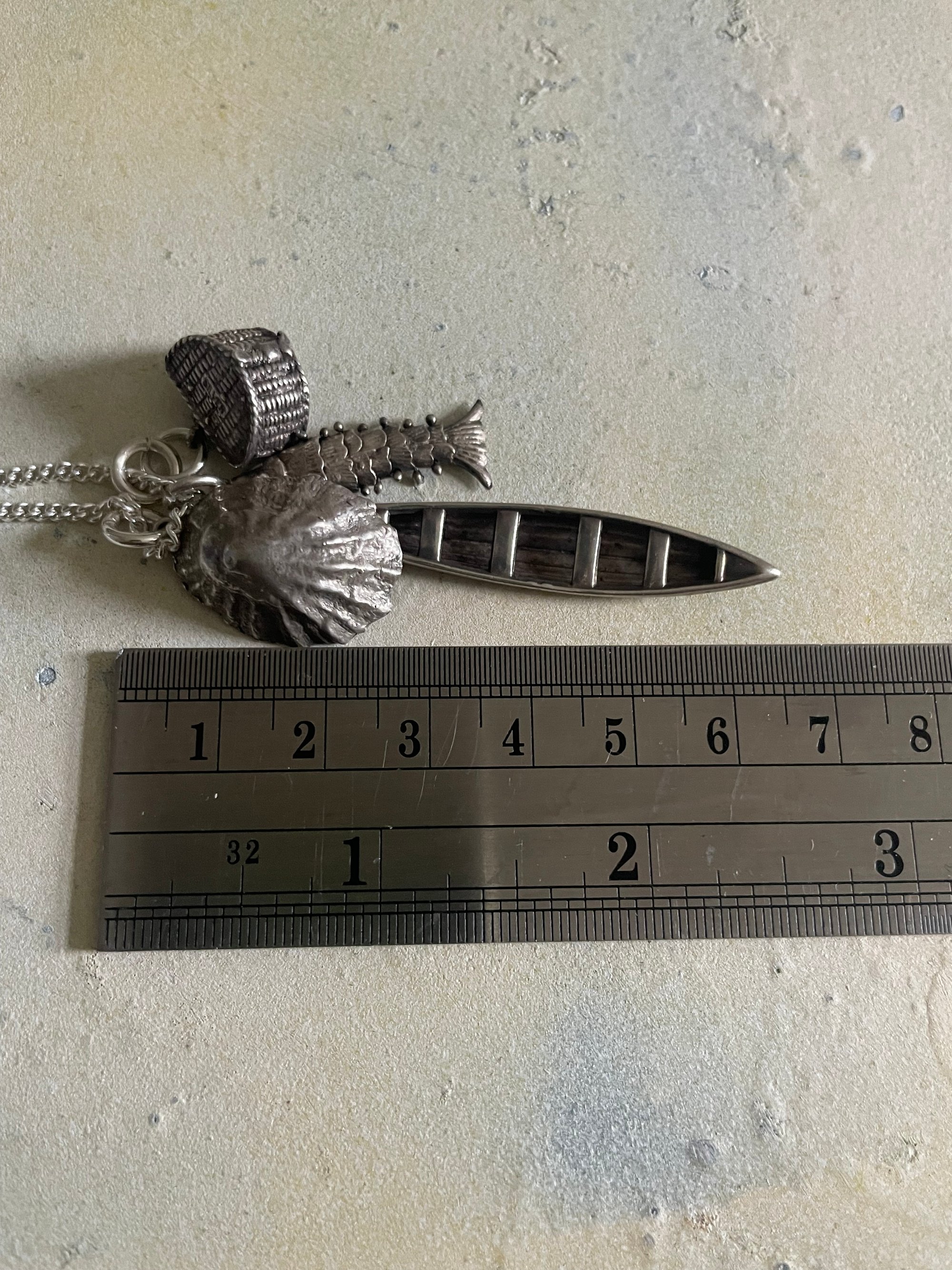 consists of a Boat, limpet shell, articulated fish & fish basket