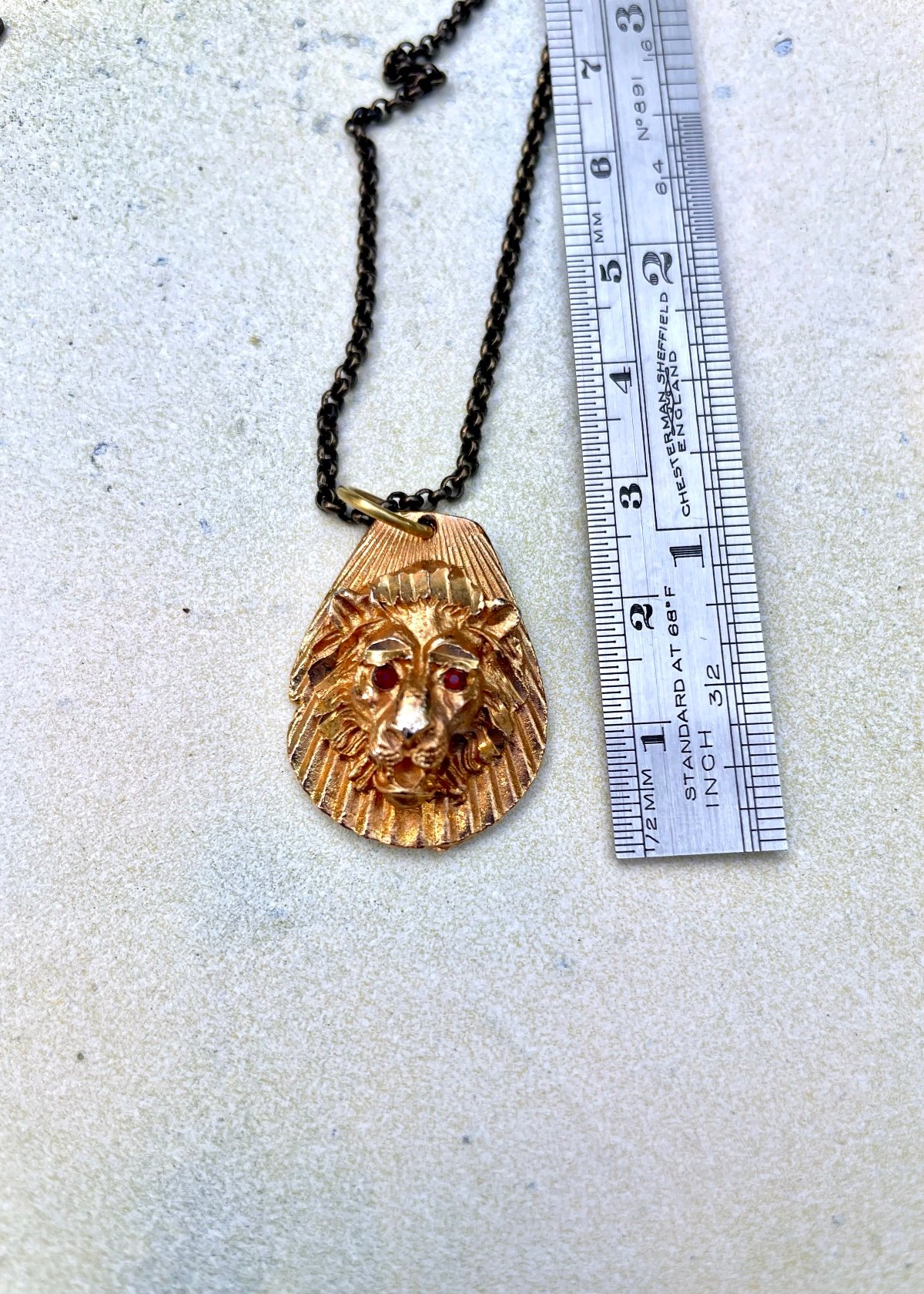 The antique finish brass chain is 54cm and using the extender the longest point is 59cm