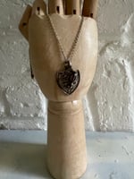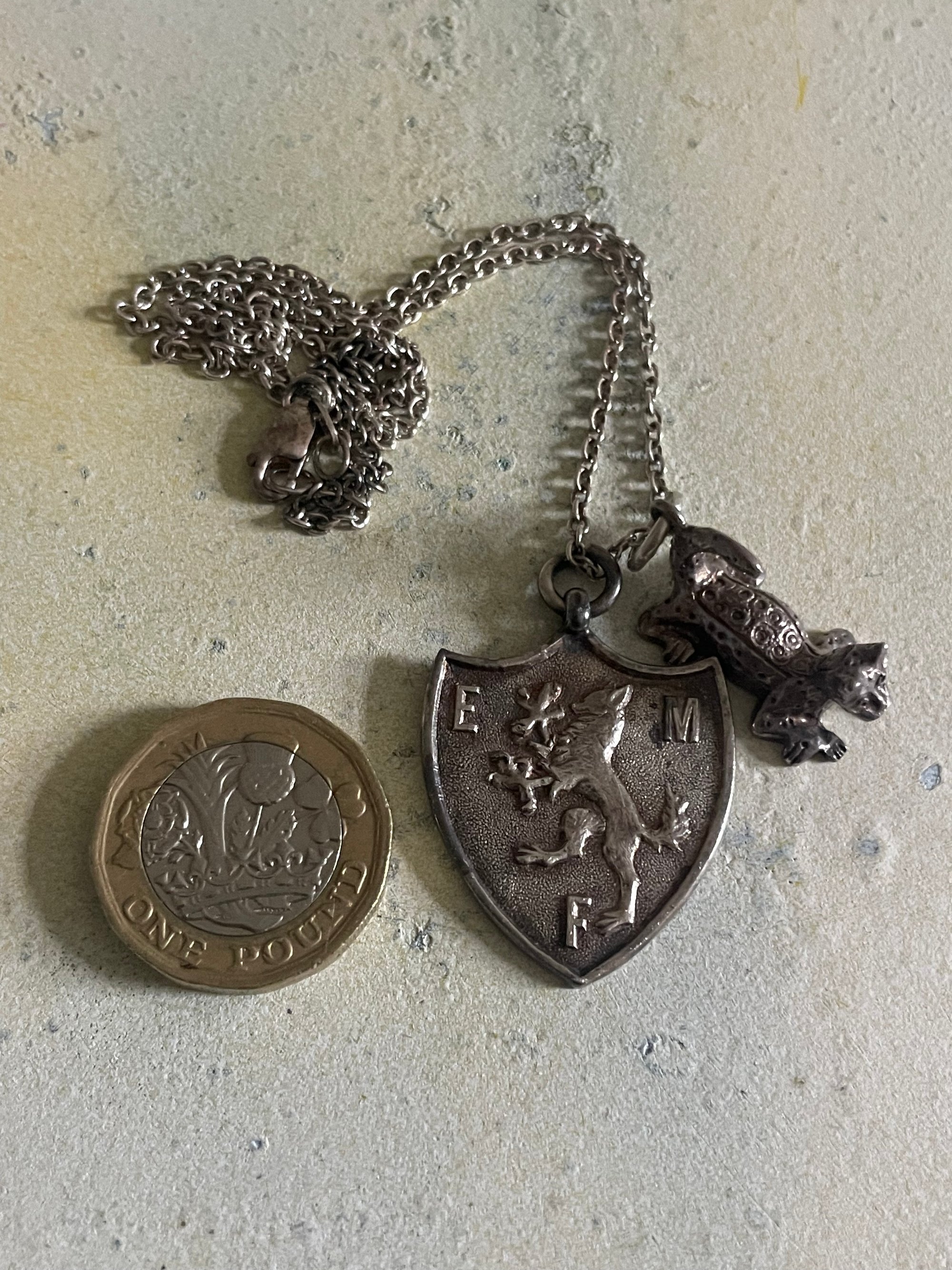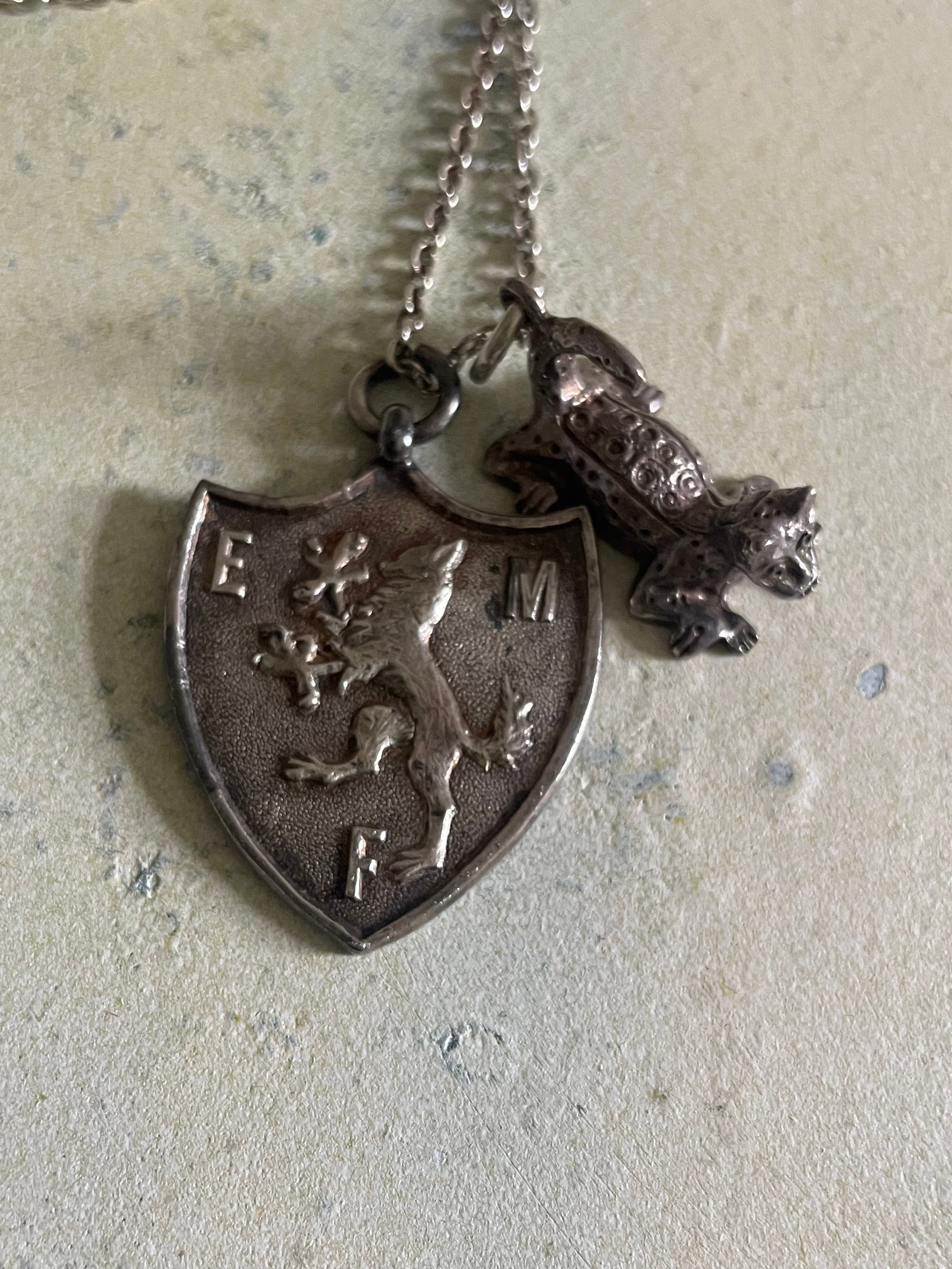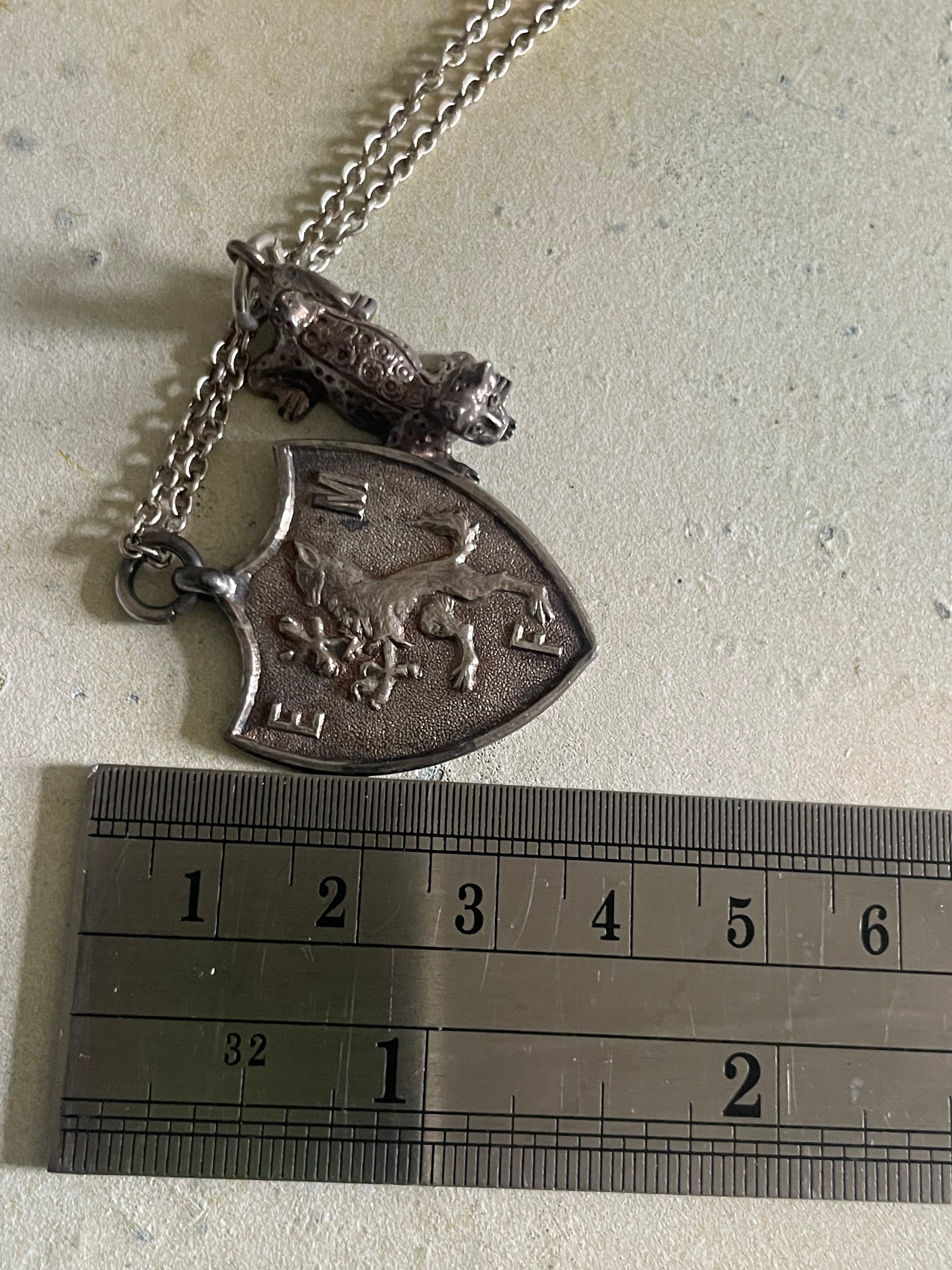 Vintage silver charm necklace sheild & leopard