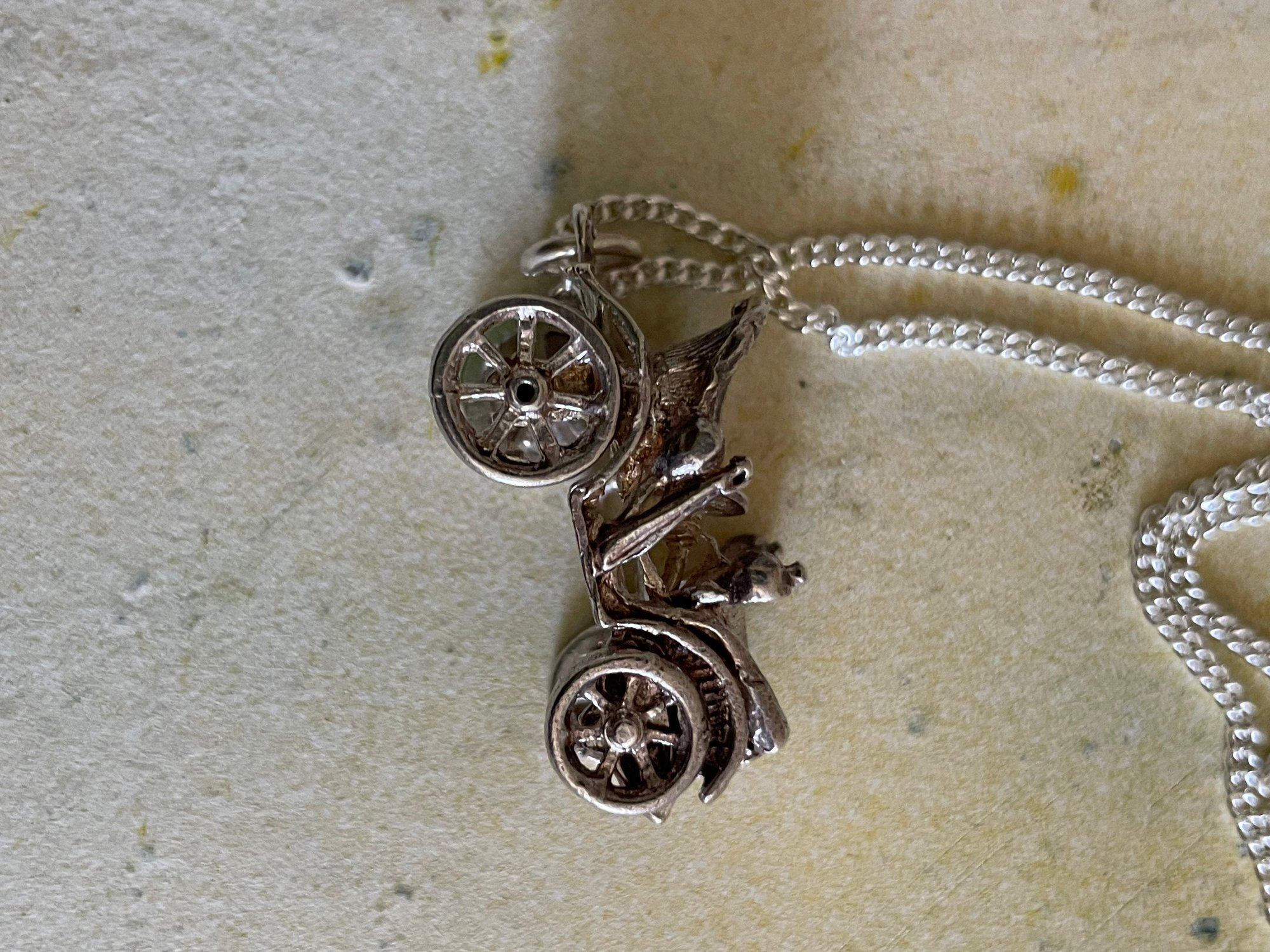 Vintage sterling silver classic car - moving wheels